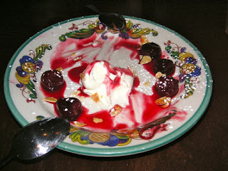 And, even though we really had enough to eat with our two courses, how could be pass up Roast Fresh Cherries with Mascarpone Cream and Almonds for a dessert to share?